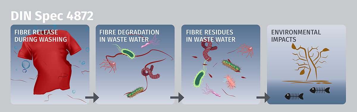 The new DIN SPEC 4872 is a standardised test method for determining and classifying the environmental impact of textiles during washing. The test method examines how many fibres are discharged when textiles are washed, how well these fibres degrade in wastewater and how harmful the fibre residues are to the environment.